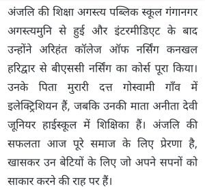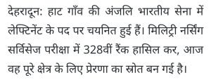 अंजलि, रूदप्रयाग की है, सैना में बनी अधिकारी।AuthorPosted byMontfortnewsindiaPublishedSeptember 30, 202410:05 amX (Twitter)FacebookLinkedInShare this postShare this postClose sharing boxअंजलि, रूदप्रयाग की है, सैना में बनी अधिकारी।X (Twitter)FacebookLinkedInTelegramPosted by Montfortnewsindia on September 30, 2024.