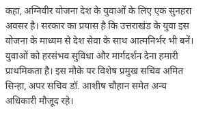 अग्नि वीर प्रशिक्षण केंद्रो का दौरा किया सीएम धामी उतराखंड ने।AuthorPosted byMontfortnewsindiaPublishedDecember 22, 20255:38 amX (Twitter)FacebookLinkedInShare this postShare this postClose sharing boxअग्नि वीर प्रशिक्षण केंद्रो का दौरा किया सीएम धामी उतराखंड ने।X (Twitter)FacebookLinkedInTelegramPosted by Montfortnewsindia on December 22, 2025.