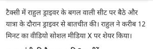 अचानक से राहुल गाँधी ने उबर टैक्सी को हायर किया और चालक से बातें करते रहे।AuthorPosted byMontfortnewsindiaPublishedAugust 20, 20242:44 pmX (Twitter)FacebookLinkedInShare this postShare this postClose sharing boxअचानक से राहुल गाँधी ने उबर टैक्सी को हायर किया और चालक से बातें करते रहे।X (Twitter)FacebookLinkedInTelegramPosted by Montfortnewsindia on August 20, 2024.