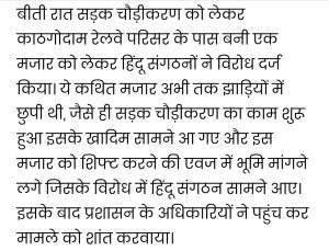 अवैध मजारों का मसला फिर एक बार तूल पकड़ता जा रहा है।AuthorPosted byMontfortnewsindiaPublishedJuly 27, 20241:58 pmX (Twitter)FacebookLinkedInShare this postShare this postClose sharing boxअवैध मजारों का मसला फिर एक बार तूल पकड़ता जा रहा है।X (Twitter)FacebookLinkedInTelegramPosted by Montfortnewsindia on July 27, 2024.