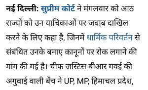 आठ राज्यों को धर्म परिवर्तन पर सुप्रीम कोर्ट ने आदेश दिया।AuthorPosted byMontfortnewsindiaPublishedSeptember 18, 20251:25 pmX (Twitter)FacebookLinkedInShare this postShare this postClose sharing boxआठ राज्यों को धर्म परिवर्तन पर सुप्रीम कोर्ट ने आदेश दिया।X (Twitter)FacebookLinkedInTelegramPosted by Montfortnewsindia on September 18, 2025.