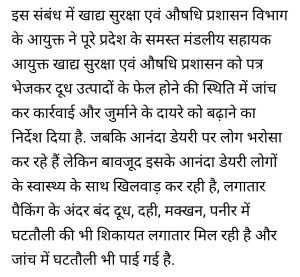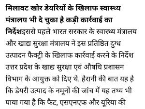 इस कदर लालच बड़ा की अब दूध के साथ अन्य चीजों में मिलावट, जहर के समान है रिपोर्ट पढ़े।