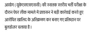 उतराखंड यूकेएस एस सी पेपर लीक मामले में खालिद के घर पर चला बुलडोजर।AuthorPosted byMontfortnewsindiaPublishedSeptember 27, 20253:37 pmX (Twitter)FacebookLinkedInShare this postShare this postClose sharing boxउतराखंड यूकेएस एस सी पेपर लीक मामले में खालिद के घर पर चला बुलडोजर।X (Twitter)FacebookLinkedInTelegramPosted by Montfortnewsindia on September 27, 2025.