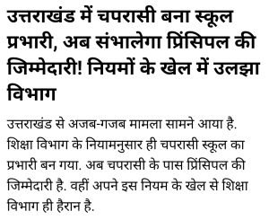 उत्तराखंड में एक चपरासी बना स्कूल का प्रिंसिपल पूरा मामला बड़ा अजब गजब विभाग भी हैरान।AuthorPosted byMontfortnewsindiaPublishedSeptember 20, 20259:08 pmX (Twitter)FacebookLinkedInShare this postShare this postClose sharing boxउत्तराखंड में एक चपरासी बना स्कूल का प्रिंसिपल पूरा मामला बड़ा अजब गजब विभाग भी हैरान।X (Twitter)FacebookLinkedInTelegramPosted by Montfortnewsindia on September 20, 2025.