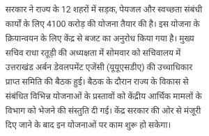 उत्तराखंड में 12 शहरों को चमकाने के लिए खर्च होगें 41 करोड़।AuthorPosted byMontfortnewsindiaPublishedFebruary 21, 202510:33 amX (Twitter)FacebookLinkedInShare this postShare this postClose sharing boxउत्तराखंड में 12 शहरों को चमकाने के लिए खर्च होगें 41 करोड़।X (Twitter)FacebookLinkedInTelegramPosted by Montfortnewsindia on February 21, 2025.
