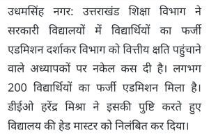 उत्तराखंड में 200 बच्चों का फर्जी नाम चढा़कर मास्टर साहब पैसा लूट रहे थे।AuthorPosted byMontfortnewsindiaPublishedMay 11, 20253:11 pmX (Twitter)FacebookLinkedInShare this postShare this postClose sharing boxउत्तराखंड में 200 बच्चों का फर्जी नाम चढा़कर मास्टर साहब पैसा लूट रहे थे।X (Twitter)FacebookLinkedInTelegramPosted by Montfortnewsindia on May 11, 2025.
