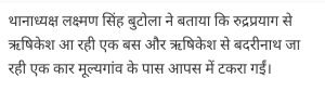 ऋषिकेश-बद्रीनाथ हाईवे पर बस और कार की जबरदस्त टक्कर में घायल दिल्ली के तीन लोग।AuthorPosted byMontfortnewsindiaPublishedJune 27, 20252:45 pmX (Twitter)FacebookLinkedInShare this postShare this postClose sharing boxऋषिकेश-बद्रीनाथ हाईवे पर बस और कार की जबरदस्त टक्कर में घायल दिल्ली के तीन लोग।X (Twitter)FacebookLinkedInTelegramPosted by Montfortnewsindia on June 27, 2025.