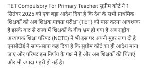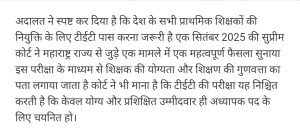एन सी टी ई की मुहर लगने के बाद सभी शिक्षकों को टीईटी करना अनिवार्य।AuthorPosted byMontfortnewsindiaPublishedOctober 22, 20258:19 amX (Twitter)FacebookLinkedInShare this postShare this postClose sharing boxएन सी टी ई की मुहर लगने के बाद सभी शिक्षकों को टीईटी करना अनिवार्य।X (Twitter)FacebookLinkedInTelegramPosted by Montfortnewsindia on October 22, 2025.