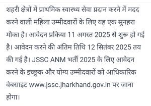 ए एन एम भर्ती झारखंड में जल्द भरे आनलाइन।AuthorPosted byMontfortnewsindiaPublishedAugust 16, 202510:10 amX (Twitter)FacebookLinkedInShare this postShare this postClose sharing boxए एन एम भर्ती झारखंड में जल्द भरे आनलाइन।X (Twitter)FacebookLinkedInTelegramPosted by Montfortnewsindia on August 16, 2025.