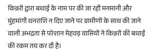 किन्नर लेने आए बधाई तो सिर्फ तय धनराशि ही दे जबरन करने पर होगी कानूनी कार्यवाही।AuthorPosted byMontfortnewsindiaPublishedAugust 19, 20242:45 pmUpdated2:47 pmX (Twitter)FacebookLinkedInShare this postShare this postClose sharing boxकिन्नर लेने आए बधाई तो सिर्फ तय धनराशि ही दे जबरन करने पर होगी कानूनी कार्यवाही।X (Twitter)FacebookLinkedInTelegramPosted by Montfortnewsindia on August 19, 2024. Updated: 2:47 pm