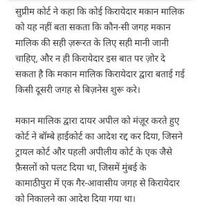 कोर्ट ने किरायेदारों के लिए बताया कि उन्हें यह जानना जरूरी है।