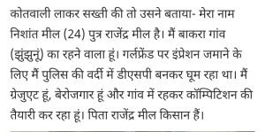 गर्ल फ्रेंड को पटाने के चक्कर में, बना नकली पुलिस वाला, असली पुलिस की गिरफ्त में सुनकर कहानी पुलिस हैरान।AuthorPosted byMontfortnewsindiaPublishedJuly 25, 202410:51 amX (Twitter)FacebookLinkedInShare this postShare this postClose sharing boxगर्ल फ्रेंड को पटाने के चक्कर में, बना नकली पुलिस वाला, असली पुलिस की गिरफ्त में सुनकर कहानी पुलिस हैरान।X (Twitter)FacebookLinkedInTelegramPosted by Montfortnewsindia on July 25, 2024.