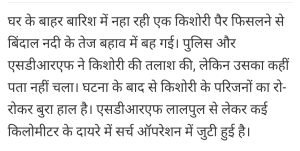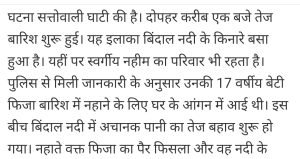 घर के बाहर ही नहाती लड़की का पैर फिसलने से पानी में बह कर चली गई, सर्च आपरेशन जारी।AuthorPosted byMontfortnewsindiaPublishedJuly 11, 20242:56 pmX (Twitter)FacebookLinkedInShare this postShare this postClose sharing boxघर के बाहर ही नहाती लड़की का पैर फिसलने से पानी में बह कर चली गई, सर्च आपरेशन जारी।X (Twitter)FacebookLinkedInTelegramPosted by Montfortnewsindia on July 11, 2024.