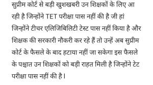 टीईटी को लेकर सुप्रीम कोर्ट का बहुत बड़ा फैसला ।AuthorPosted byMontfortnewsindiaPublishedNovember 11, 202510:10 pmX (Twitter)FacebookLinkedInShare this postShare this postClose sharing boxटीईटी को लेकर सुप्रीम कोर्ट का बहुत बड़ा फैसला ।X (Twitter)FacebookLinkedInTelegramPosted by Montfortnewsindia on November 11, 2025.