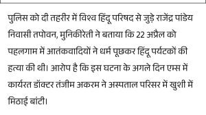 डॉ. तंजीम ने पहलगाम हमले के बाद रमजान बताकर मिठाई बांटी अब असर दिखा।AuthorPosted byMontfortnewsindiaPublishedMay 19, 20258:07 pmX (Twitter)FacebookLinkedInShare this postShare this postClose sharing boxडॉ. तंजीम ने पहलगाम हमले के बाद रमजान बताकर मिठाई बांटी अब असर दिखा।X (Twitter)FacebookLinkedInTelegramPosted by Montfortnewsindia on May 19, 2025.