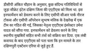 दिल्ली पुलिस को मिला खुफिया इंटेल, सर्च आपरेशन किया।