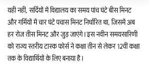 देहरादून राज्य में अब स्कूलों में आधा घंटा और जयादा पढाई होगी।