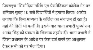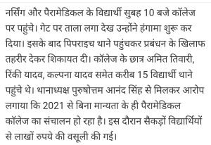 नर्सिंग कालेज की मान्यता ही नहीं फर्जीवाड़ा चल रहा है।