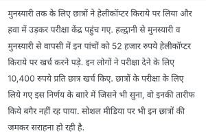 पढा़ई के लिए बुक किया हैलिकॉप्टर उतराखंड पहुंचे चार युवक।AuthorPosted byMontfortnewsindiaPublishedSeptember 8, 20258:50 pmX (Twitter)FacebookLinkedInShare this postShare this postClose sharing boxपढा़ई के लिए बुक किया हैलिकॉप्टर उतराखंड पहुंचे चार युवक।X (Twitter)FacebookLinkedInTelegramPosted by Montfortnewsindia on September 8, 2025.