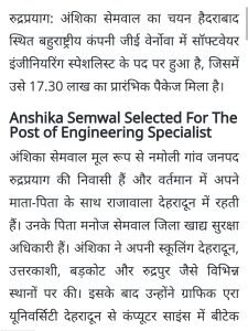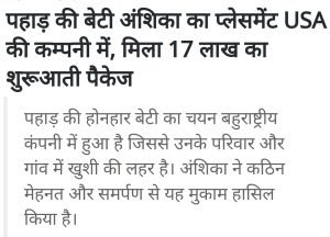 पहाड़ की बेटी का सलेक्शन अमेरिका में हुआ लाखों का पैकेज, ग्राफिक ईरा यूनिवर्सिटी।