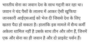 पाक की सेना के लिए करता रहा जासूसी पुलिस ने धर दबोचा सेना का यह आदमी।AuthorPosted byMontfortnewsindiaPublishedFebruary 6, 20252:10 pmX (Twitter)FacebookLinkedInShare this postShare this postClose sharing boxपाक की सेना के लिए करता रहा जासूसी पुलिस ने धर दबोचा सेना का यह आदमी।X (Twitter)FacebookLinkedInTelegramPosted by Montfortnewsindia on February 6, 2025.