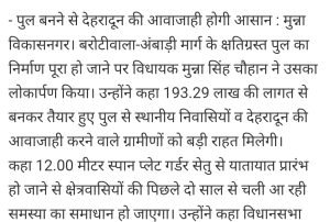 पुल का उद्घाटन करने पहुंचे विकासनगर देहरादून के विधायक मुन्ना सिंह चौहान।AuthorPosted byMontfortnewsindiaPublishedJanuary 5, 20267:22 pmX (Twitter)FacebookLinkedInShare this postShare this postClose sharing boxपुल का उद्घाटन करने पहुंचे विकासनगर देहरादून के विधायक मुन्ना सिंह चौहान।X (Twitter)FacebookLinkedInTelegramPosted by Montfortnewsindia on January 5, 2026.