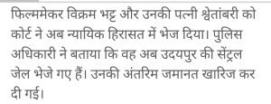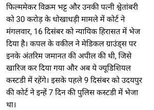 फिल्म मेकर विक्रम भट और उनकी पत्नी को जेल भेजा।AuthorPosted byMontfortnewsindiaPublishedDecember 18, 20256:50 pmX (Twitter)FacebookLinkedInShare this postShare this postClose sharing boxफिल्म मेकर विक्रम भट और उनकी पत्नी को जेल भेजा।X (Twitter)FacebookLinkedInTelegramPosted by Montfortnewsindia on December 18, 2025.