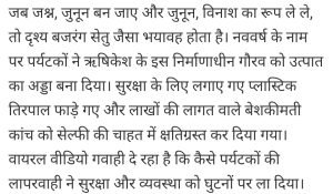 बजरंग सेतु पर पर्यटकों ने ऋषिकेश में जबरदस्त उत्पात काटा।