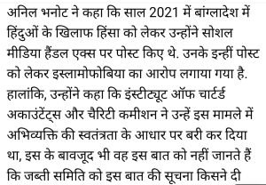 बांग्लादेश के हिन्दुओं पर हो रहे अत्याचार के खिलाफ उठाई थी आवाज ।AuthorPosted byMontfortnewsindiaPublishedDecember 8, 20244:27 pmX (Twitter)FacebookLinkedInShare this postShare this postClose sharing boxबांग्लादेश के हिन्दुओं पर हो रहे अत्याचार के खिलाफ उठाई थी आवाज ।X (Twitter)FacebookLinkedInTelegramPosted by Montfortnewsindia on December 8, 2024.
