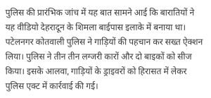 बारातियों को देहरादून में पडा़ सड़को पर हुदड़ग मचाना, पुलिस ने कि कार्यवाही, वायरल विडियो पर।AuthorPosted byMontfortnewsindiaPublishedMay 27, 20258:42 amX (Twitter)FacebookLinkedInShare this postShare this postClose sharing boxबारातियों को देहरादून में पडा़ सड़को पर हुदड़ग मचाना, पुलिस ने कि कार्यवाही, वायरल विडियो पर।X (Twitter)FacebookLinkedInTelegramPosted by Montfortnewsindia on May 27, 2025.