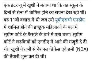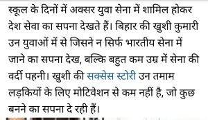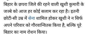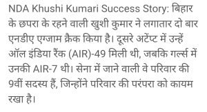 बिहार छपरा की रहने वाली खुशी कुमारी ने एनडीए में बाजी मारी।
