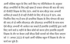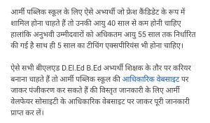 बीएड वाले भी आर्मी में प्राइमरी में शिक्षक बन सकते हैं।AuthorPosted byMontfortnewsindiaPublishedJune 7, 20258:24 pmX (Twitter)FacebookLinkedInShare this postShare this postClose sharing boxबीएड वाले भी आर्मी में प्राइमरी में शिक्षक बन सकते हैं।X (Twitter)FacebookLinkedInTelegramPosted by Montfortnewsindia on June 7, 2025.