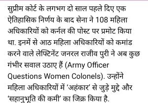 महिला कर्नल पर अधिकारियों ने उठाए सवाल सेना में।AuthorPosted byMontfortnewsindiaPublishedNovember 27, 20241:12 pmX (Twitter)FacebookLinkedInShare this postShare this postClose sharing boxमहिला कर्नल पर अधिकारियों ने उठाए सवाल सेना में।X (Twitter)FacebookLinkedInTelegramPosted by Montfortnewsindia on November 27, 2024.