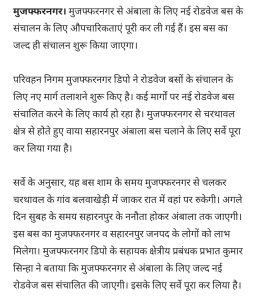 मुजफ्फरनगर से अंबाला तक सीधे चलेगी रोड़वेज बसें।AuthorPosted byMontfortnewsindiaPublishedDecember 31, 20248:30 pmX (Twitter)FacebookLinkedInShare this postShare this postClose sharing boxमुजफ्फरनगर से अंबाला तक सीधे चलेगी रोड़वेज बसें।X (Twitter)FacebookLinkedInTelegramPosted by Montfortnewsindia on December 31, 2024.