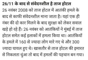 मुम्बई ताज होटल के बाहर खडी़ मिली 2 कार एक ही नंबर की मचा हडकंप।AuthorPosted byMontfortnewsindiaPublishedJanuary 6, 20254:18 pmX (Twitter)FacebookLinkedInShare this postShare this postClose sharing boxमुम्बई ताज होटल के बाहर खडी़ मिली 2 कार एक ही नंबर की मचा हडकंप।X (Twitter)FacebookLinkedInTelegramPosted by Montfortnewsindia on January 6, 2025.