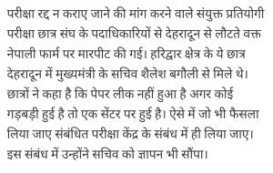 यूकेएस एस सी परीक्षा का सचिव को ज्ञापन सौंपकर लौट रहे छात्रों से रास्ते में रोककर मारपीट की।AuthorPosted byMontfortnewsindiaPublishedSeptember 24, 20258:38 amX (Twitter)FacebookLinkedInShare this postShare this postClose sharing boxयूकेएस एस सी परीक्षा का सचिव को ज्ञापन सौंपकर लौट रहे छात्रों से रास्ते में रोककर मारपीट की।X (Twitter)FacebookLinkedInTelegramPosted by Montfortnewsindia on September 24, 2025.