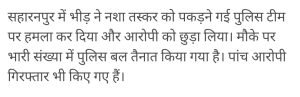 यूपी के सहारनपुर में तस्कर को पकड़ने गई पुलिस की आखों में फैंका मिर्च पाउडर।AuthorPosted byMontfortnewsindiaPublishedAugust 14, 202410:14 amX (Twitter)FacebookLinkedInShare this postShare this postClose sharing boxयूपी के सहारनपुर में तस्कर को पकड़ने गई पुलिस की आखों में फैंका मिर्च पाउडर।X (Twitter)FacebookLinkedInTelegramPosted by Montfortnewsindia on August 14, 2024.