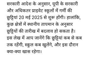 यूपी में गर्मियों की छुट्टी जल्द होगी।AuthorPosted byMontfortnewsindiaPublishedMay 9, 20258:41 pmX (Twitter)FacebookLinkedInShare this postShare this postClose sharing boxयूपी में गर्मियों की छुट्टी जल्द होगी।X (Twitter)FacebookLinkedInTelegramPosted by Montfortnewsindia on May 9, 2025.