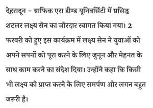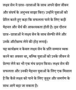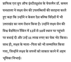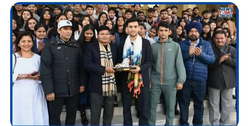 लक्ष्य सेन को ग्राफिक एरा यूनिवर्सिटी में ग्रेंड वेलकम किया 11 लाख का चैक।