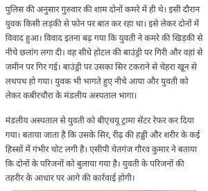 लड़की ने अचानक से होटल की खिड़की से लगा दी छलांग।AuthorPosted byMontfortnewsindiaPublishedDecember 21, 20247:08 pmX (Twitter)FacebookLinkedInShare this postShare this postClose sharing boxलड़की ने अचानक से होटल की खिड़की से लगा दी छलांग।X (Twitter)FacebookLinkedInTelegramPosted by Montfortnewsindia on December 21, 2024.