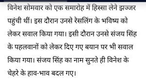 विनेश फोगाट ने किया इनकार मैं नहीं जानती हूँ, कौन है संजय सिंह।AuthorPosted byMontfortnewsindiaPublishedAugust 28, 202411:42 amX (Twitter)FacebookLinkedInShare this postShare this postClose sharing boxविनेश फोगाट ने किया इनकार मैं नहीं जानती हूँ, कौन है संजय सिंह।X (Twitter)FacebookLinkedInTelegramPosted by Montfortnewsindia on August 28, 2024.