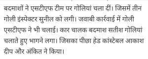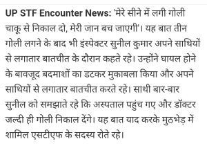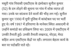 शामली एनकाउंटर में इंसपेक्टर सुनील की गई जान हुए शहीद।