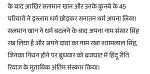 सलमान खान बने संसार सिंह सनातन में घर वापसी।AuthorPosted byMontfortnewsindiaPublishedDecember 15, 202411:15 amX (Twitter)FacebookLinkedInShare this postShare this postClose sharing boxसलमान खान बने संसार सिंह सनातन में घर वापसी।X (Twitter)FacebookLinkedInTelegramPosted by Montfortnewsindia on December 15, 2024.