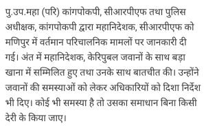सीआरपीएफ बटालियन के महानिदेशक ने किया दौरा और जवानों की समस्या का समाधान करने का वायदा किया।AuthorPosted byMontfortnewsindiaPublishedFebruary 21, 20259:54 amX (Twitter)FacebookLinkedInShare this postShare this postClose sharing boxसीआरपीएफ बटालियन के महानिदेशक ने किया दौरा और जवानों की समस्या का समाधान करने का वायदा किया।X (Twitter)FacebookLinkedInTelegramPosted by Montfortnewsindia on February 21, 2025.