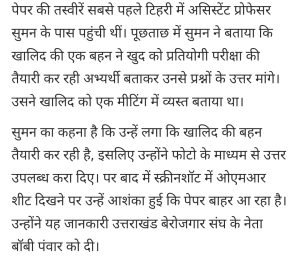 हरबर्टपुर, विकासनगर, देहरादून( उत्तराखंड) के सेपिंयस स्कूल की मिली भगत का आरोप उतराखंड युवाओं ने लगाया और कहा इस स्कूल पर कार्यवाही होनी चाहिए , पहले भी कई मामले सामने आये अब पेपर लीक मामले में कैमरों पर काली पन्नी चढ़ाने का मामला सामने आया।