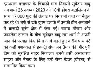हिमाचल प्रदेश के दो सपूतों को सेना में सम्मान दिया गया पूरा क्षेत्र गर्व कर रहा है।AuthorPosted byMontfortnewsindiaPublishedJanuary 13, 20267:56 pmUpdated7:57 pmX (Twitter)FacebookLinkedInShare this postShare this postClose sharing boxहिमाचल प्रदेश के दो सपूतों को सेना में सम्मान दिया गया पूरा क्षेत्र गर्व कर रहा है।X (Twitter)FacebookLinkedInTelegramPosted by Montfortnewsindia on January 13, 2026. Updated: 7:57 pm