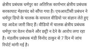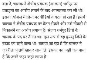 हिमाचल प्रदेश के पथ परिवहन मे चालक ने की आत्महत्या।AuthorPosted byMontfortnewsindiaPublishedJanuary 14, 20257:41 pmX (Twitter)FacebookLinkedInShare this postShare this postClose sharing boxहिमाचल प्रदेश के पथ परिवहन मे चालक ने की आत्महत्या।X (Twitter)FacebookLinkedInTelegramPosted by Montfortnewsindia on January 14, 2025.