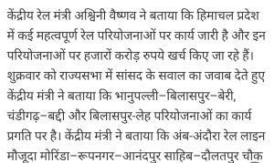 हिमाचल प्रदेश में कई रेल परियोजनाओं को लेकर रेल मंत्री ने बताया।AuthorPosted byMontfortnewsindiaPublishedMarch 15, 20267:27 pmX (Twitter)FacebookLinkedInShare this postShare this postClose sharing boxहिमाचल प्रदेश में कई रेल परियोजनाओं को लेकर रेल मंत्री ने बताया।X (Twitter)FacebookLinkedInTelegramPosted by Montfortnewsindia on March 15, 2026.