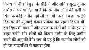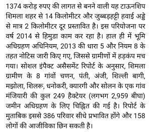 हिमाचल प्रदेश में जनता में टाऊन शिप बनाने के लिए जबरदस्त रोष उत्पन्न है।