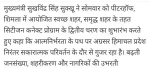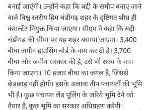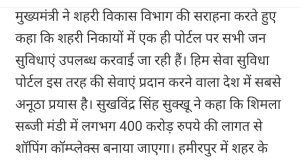 हिमाचल प्रदेश में सुखविंदर सिंह सुखु ने नया शहर बसाने की योजना साझा की।